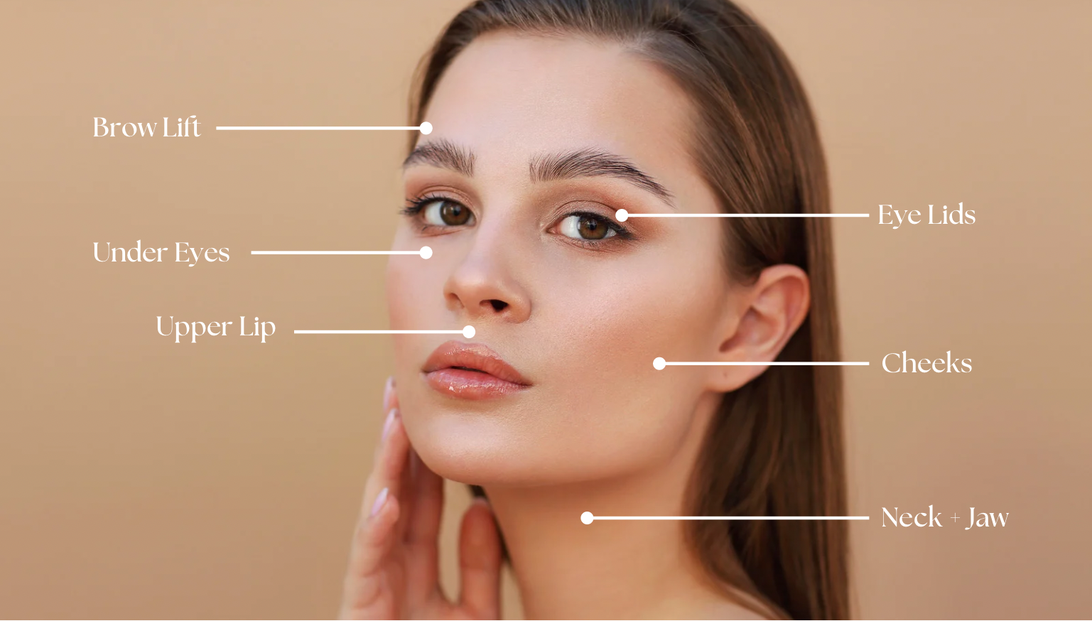 - Upper & lower eyelids (non-surgical blepharoplasty)